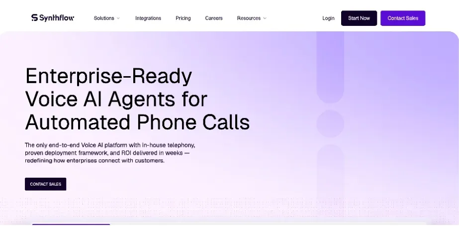 Designed as a no-code AI voice automation platform, Synthflow allows businesses to build custom voice agents without engineering overload.
