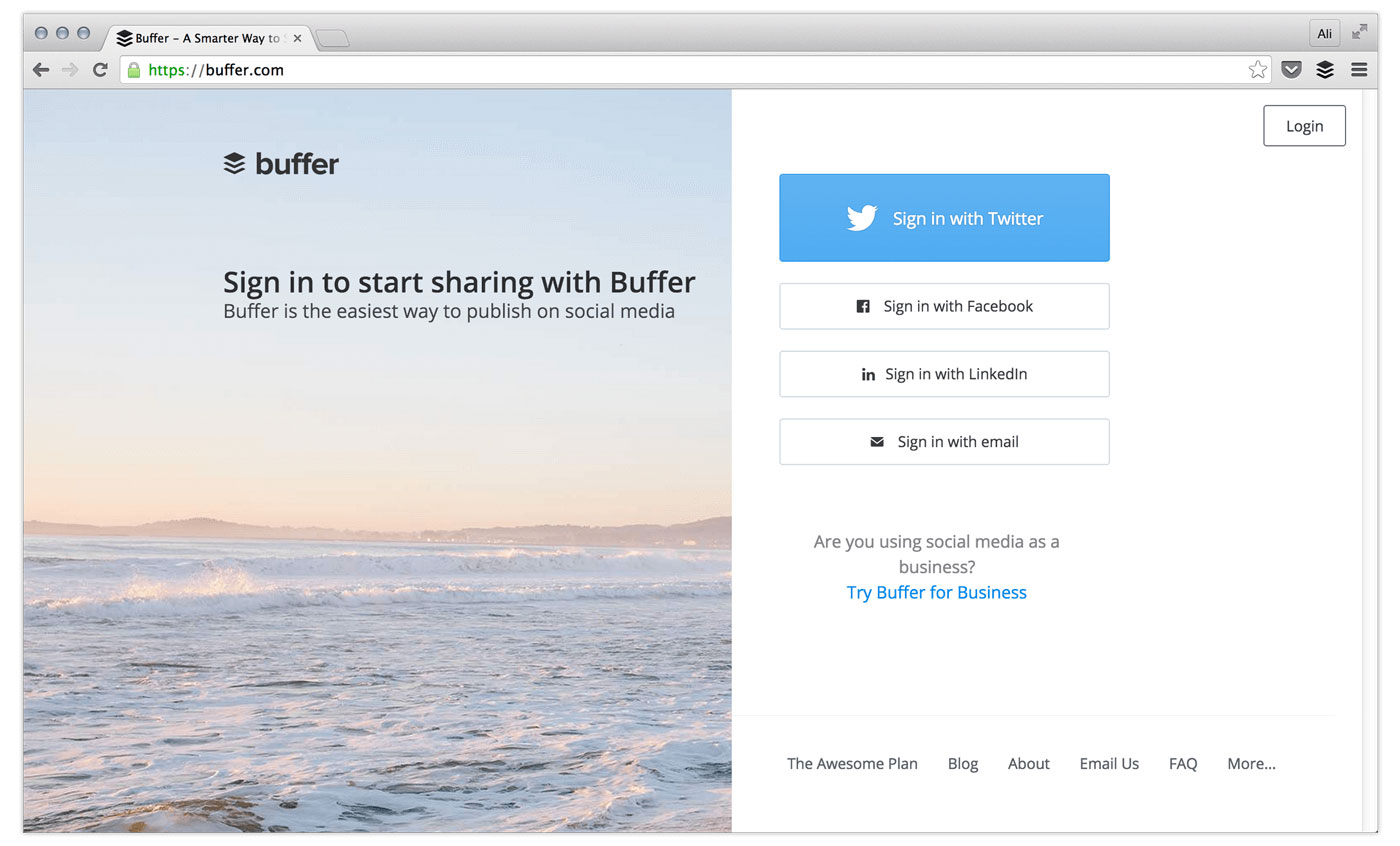 Q1. Buffer’s core business is their social media management software that helps you to schedule posts to networks like Twitter, Facebook and LinkedIn.