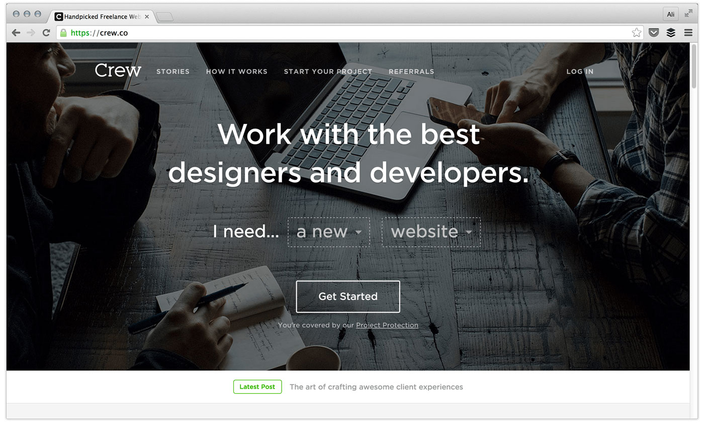 Q1. Crew’s core business matches people who have a project that needs high-quality creative work with a pool of handpicked freelance designers and developers.