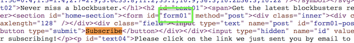 Get the form ID by right-clicking on your live page. Click on show the source code. Search for "subscribe" and then identify the form ID. For me it's form01.