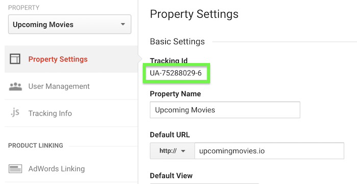 Then add a new property with your website. You should get a new tracking ID. Copy it.