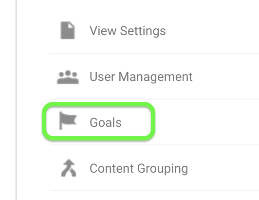 Let's configure a goal tied to this event now. In GA, go to the administration panel, and select Goals: