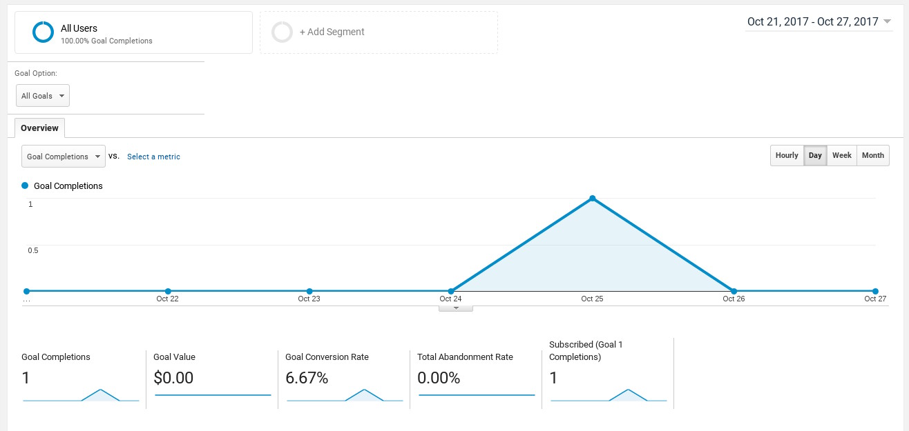 • Click on Verify this Goal. You should have a conversion rate of more than 0.00%. If you don't, wait 24 hours and try this button again.