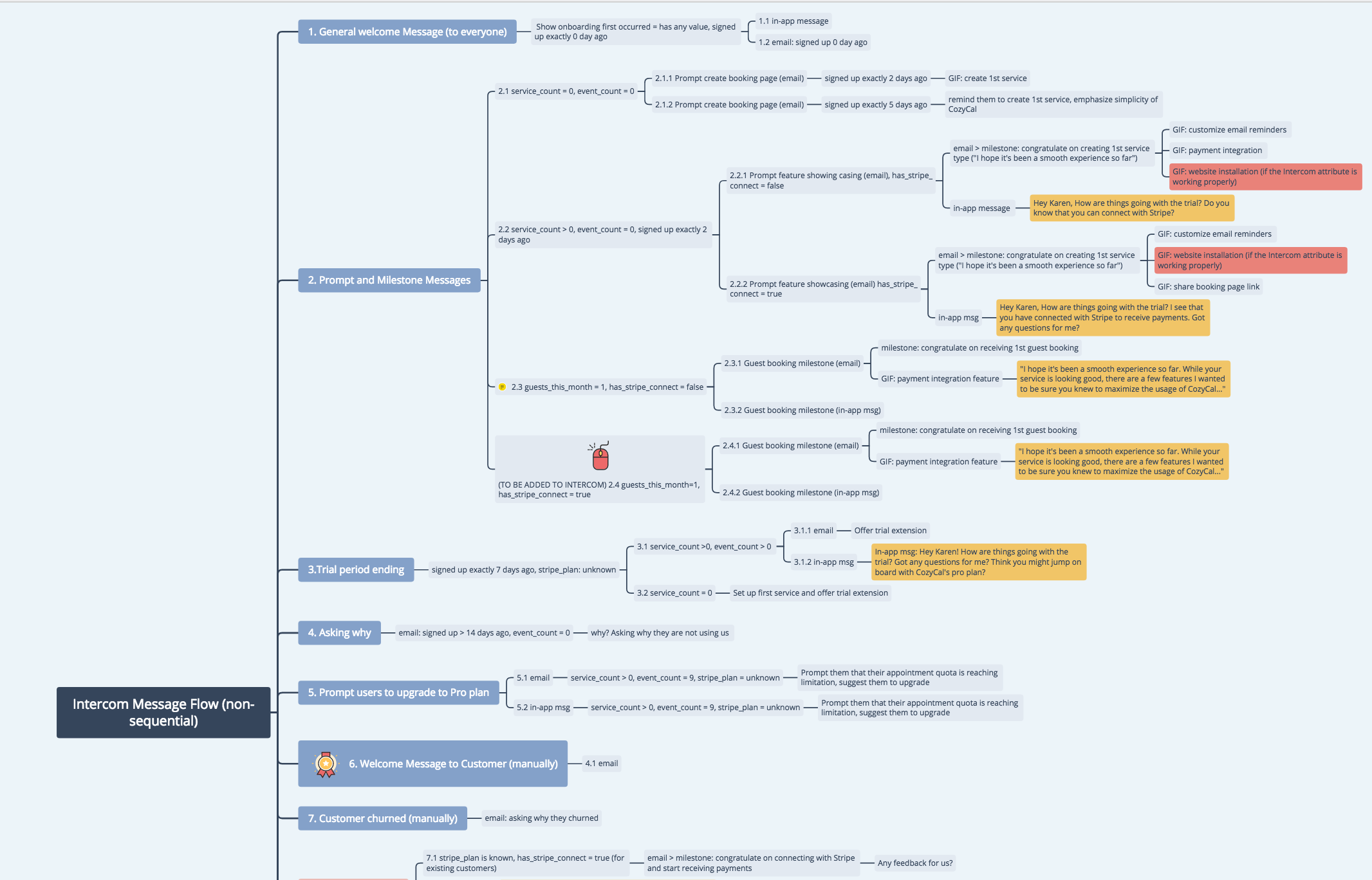 Using Xmind, I created an Intercom messaging campaign that targets different user segments in our funnel.