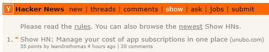 So, in my case that would have been: ‘Show HN: A dashboard to track your subscription costs, made with UI Kit’.