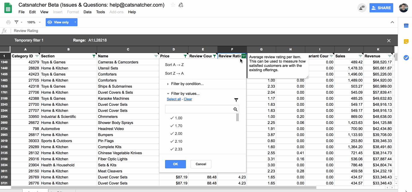 Feel free to reach out on Twitter if you’re thinking of running a product beta on Sheets. Also, if you are an Amazon seller or considering becoming one, check out the Catsnatcher beta file to find your perfect high-profit, low competition niche!