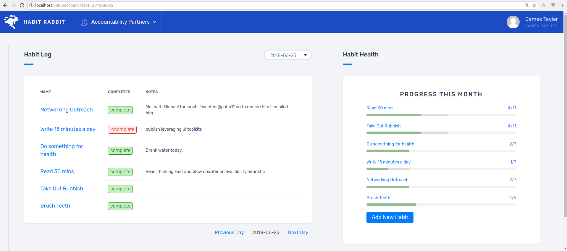 I recently bit the bullet and bought bullettrain.co and it's awesome. Engineering at 200 miles an hour sure beats the heck of out engineering at the speed of Thomas the Tank engine. In my quest to break away from Java and dive head first into learning Rails I figured it would be best to build a quick and useful project. So this last week my after-hours hacking has been taken up with building Habit Rabbit - a habit forming/tracking web application.