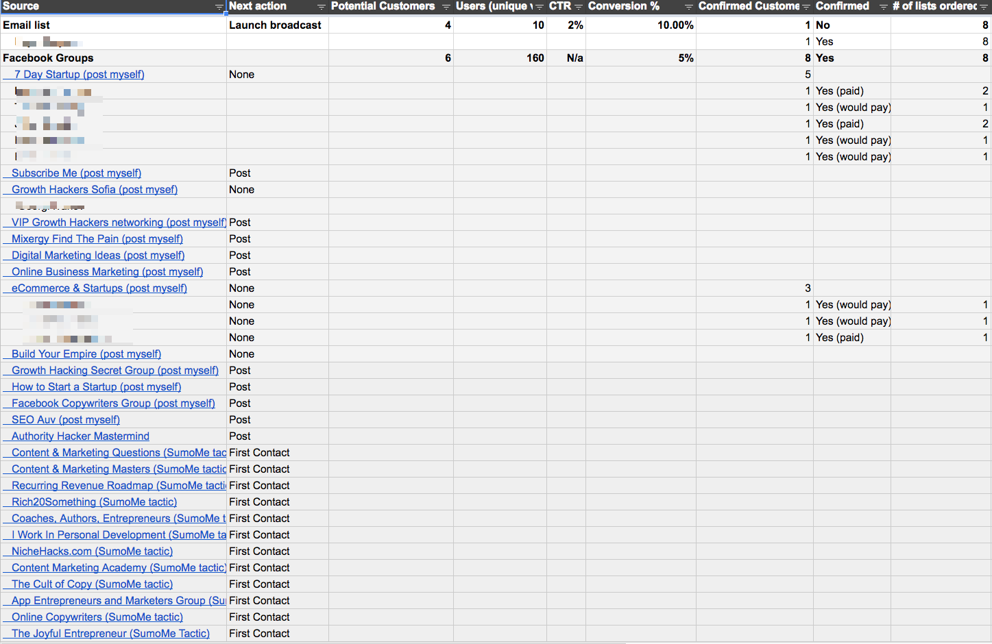 For the MVP of HeadReach, I used something called a “quant-based marketing spreadsheet” or “hypothesis spreadsheet.”