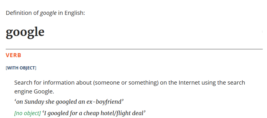 Google, as a verb, was added to the Oxford English Dictionary and to the eleventh edition of the Merriam-Webster Collegiate Dictionary. Google was now The Ruler. And an official word in our dictionaries.
