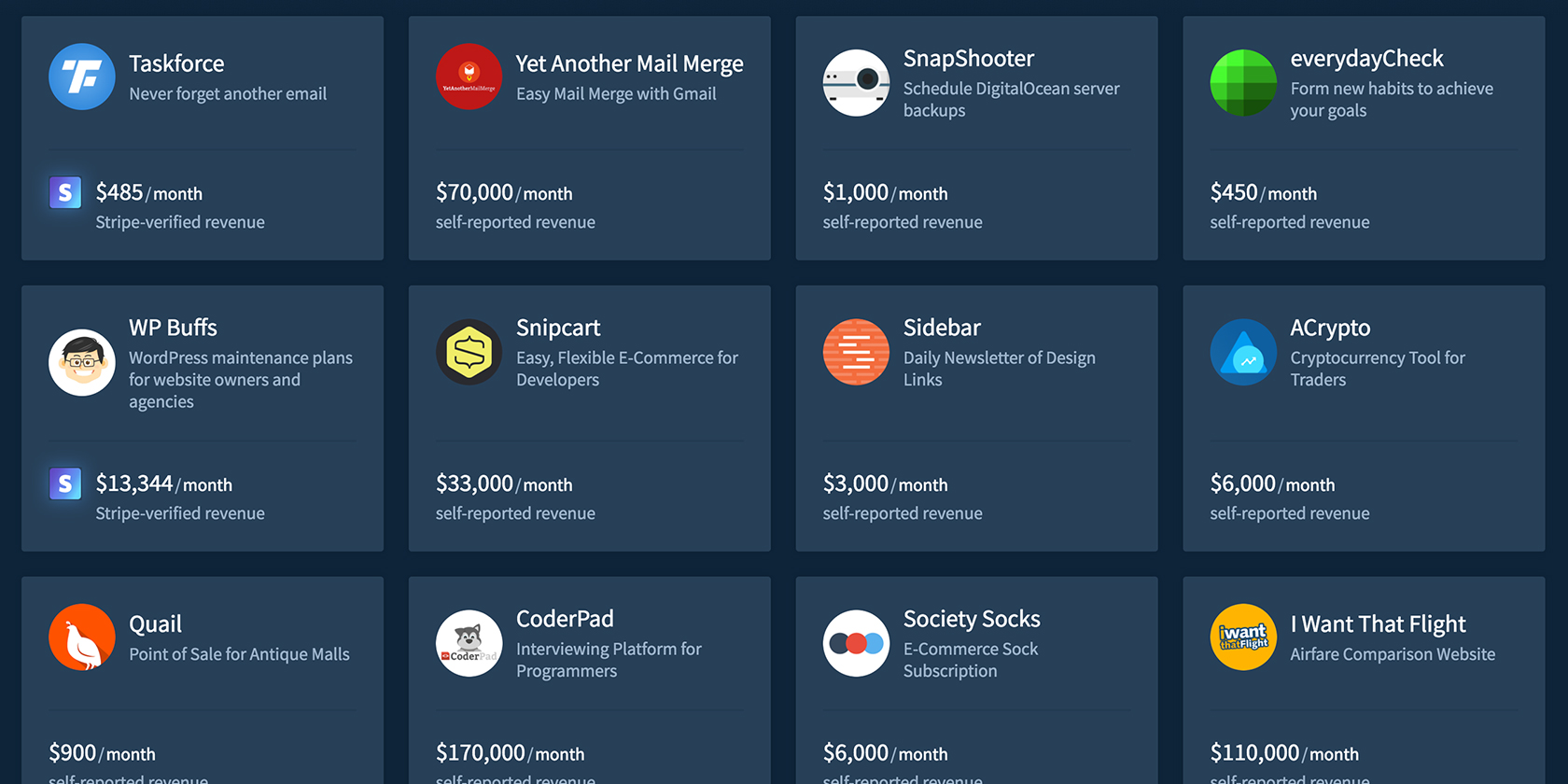 Another idea... would be cool if a product could be listed for sale. With all the transparency available, it would be a nice way for other indie hackers to find a profitable side project to buy. Perhaps, sell verified buyer memberships to see which products are for sale.