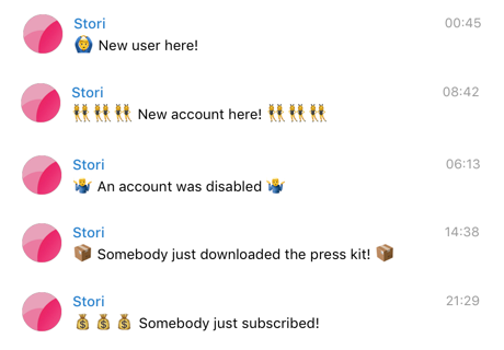 Wow I'd never heard of Telegram before. Seems like a really great solution for a service thats just getting started. I could see it becoming a bit of a nuisance once you reach a certain scale and the events are too frequent.
