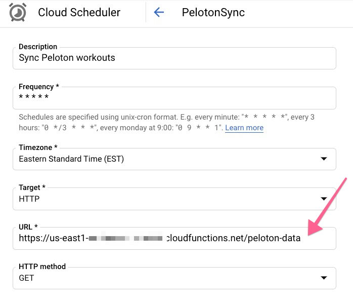 The key field to fill out when you set up a new Cloud Scheduler job is the URL