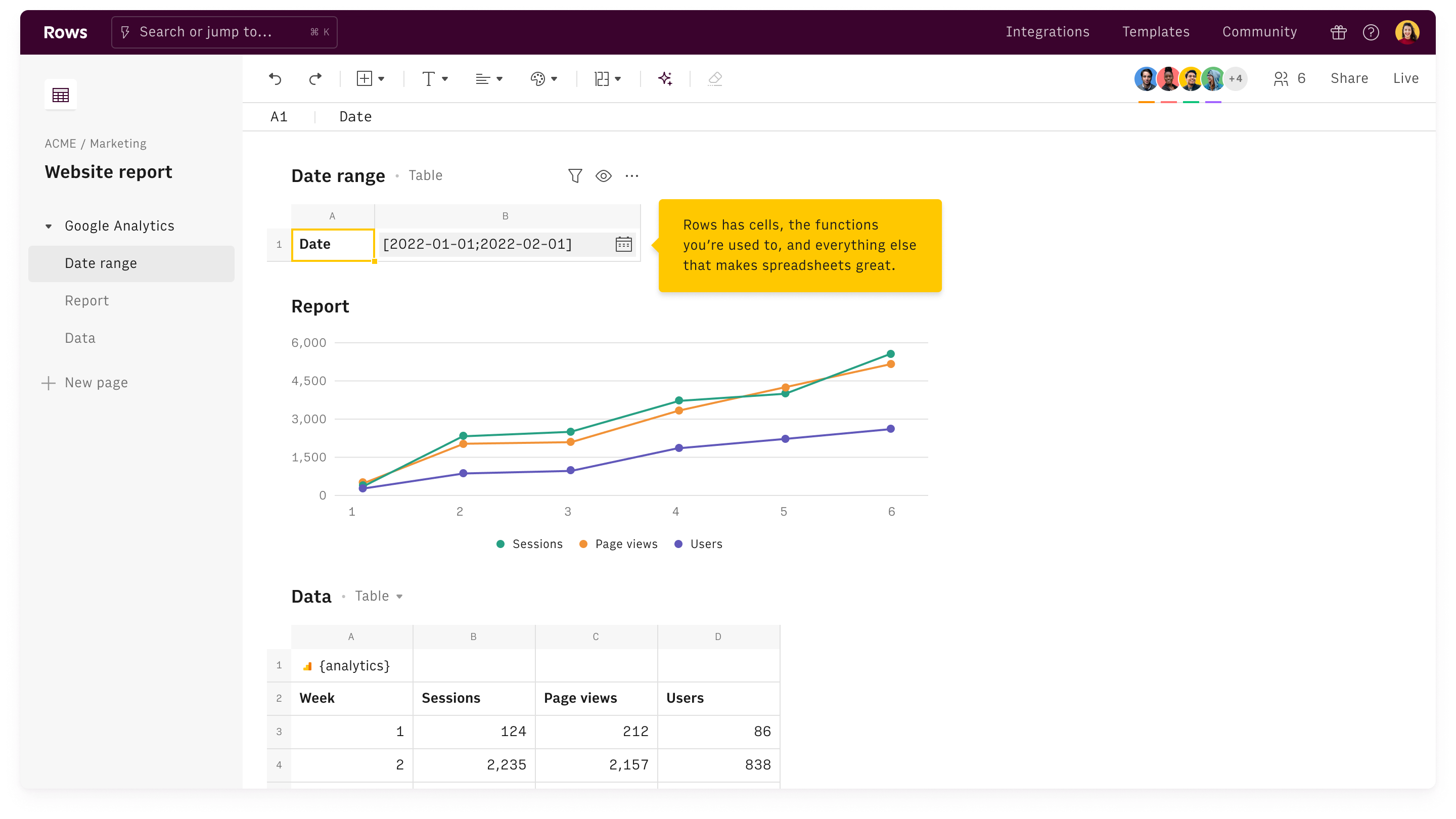 Rows bills itself as "the spreadsheet with superpowers." Their stated goal is to reimagine Google Sheets or Excel for the modern age. If you like Airtable's flexibility, but yearn for the powerful formulas of Excel, Rows is for you.