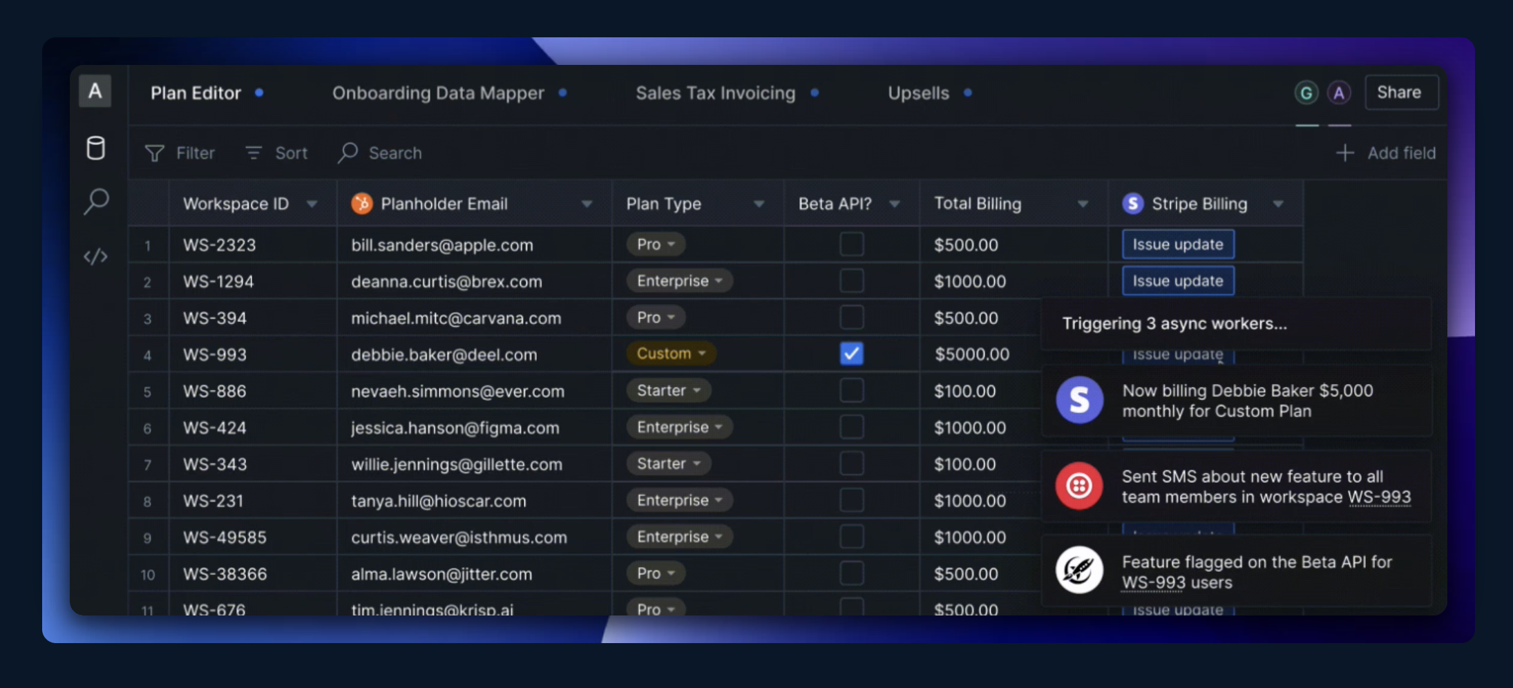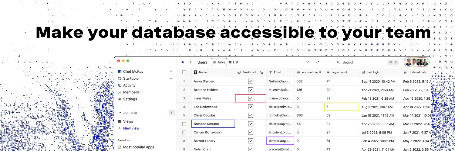 It works by connecting to any major SQL database. After that, you have an Airtable-like spreadsheet where you can manage your data. The UI is not quite as flexible as Airtable's when comes to things like filtering or creating views. But the reason you use Basedash is different than Airtable. Basedash gives you detailed activity logs and access control. It's a perfect choice if non-technical members of your team need access to data in your SQL databases.
