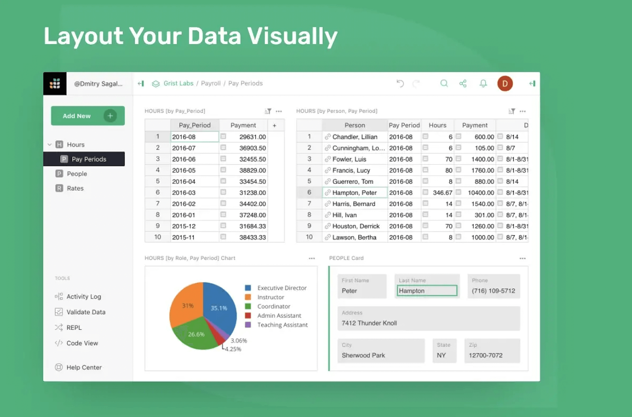 Grist is not quite as intuitive as Airtable and doesn't offer as many options for views or field types. While it might be a tad harder to get started, Grist makes it up in its robustness as a database tool. Out of the box, Grist gives you access control rules, detailed document history, raw data, and a code view. They also offer many Excel functions which make it easy to build powerful formulas.