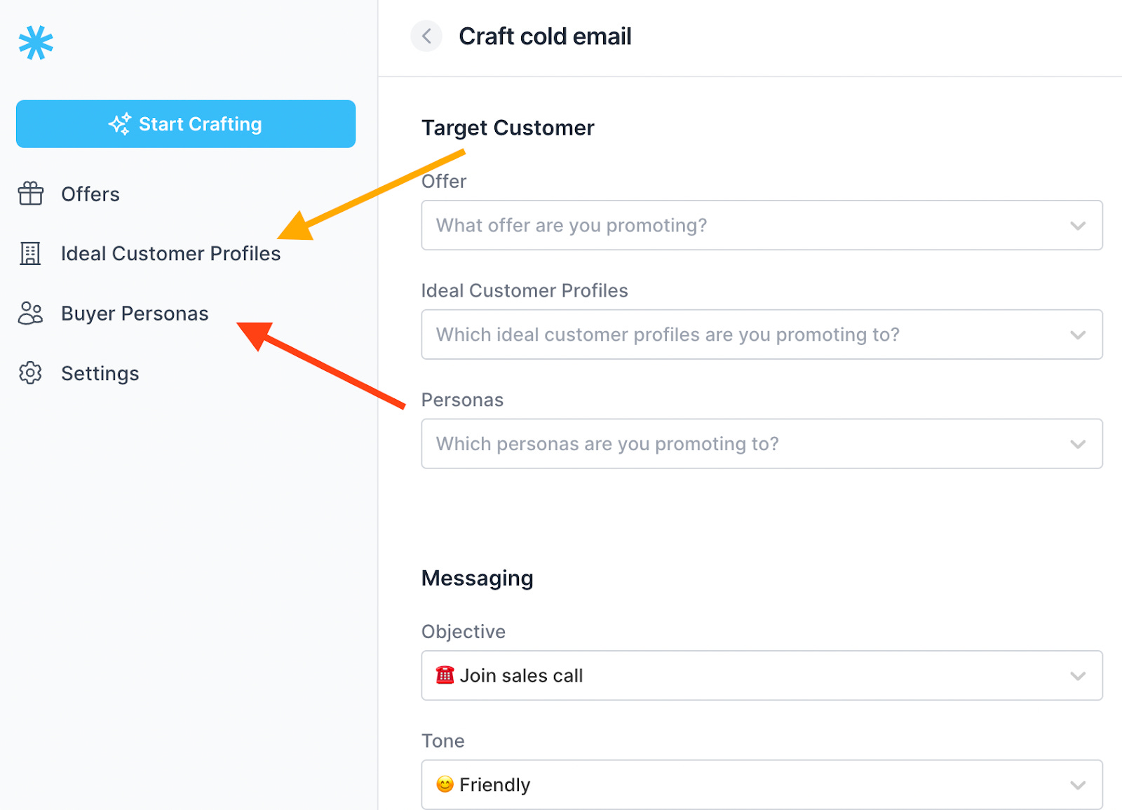Ideal Customer Profiles represent an ideal business that you want to pitch to. Here you can define properties such as industry, employee count, revenue, specific pain points in the company, etc...