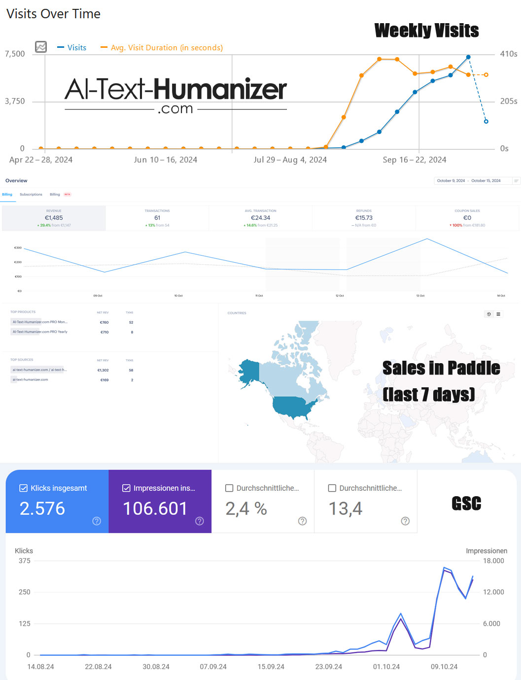 You can see the visitor progress if you enter the url https://ai-text-humanizer.com into ahrefs, Semrush, or your favourite SEO tool.