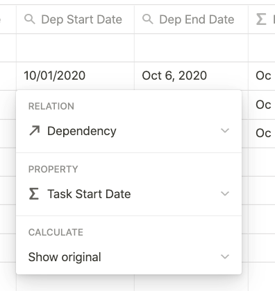 To get the dependency’s start date and end date like we have in the Google Sheets, we can simply reference the Dependency