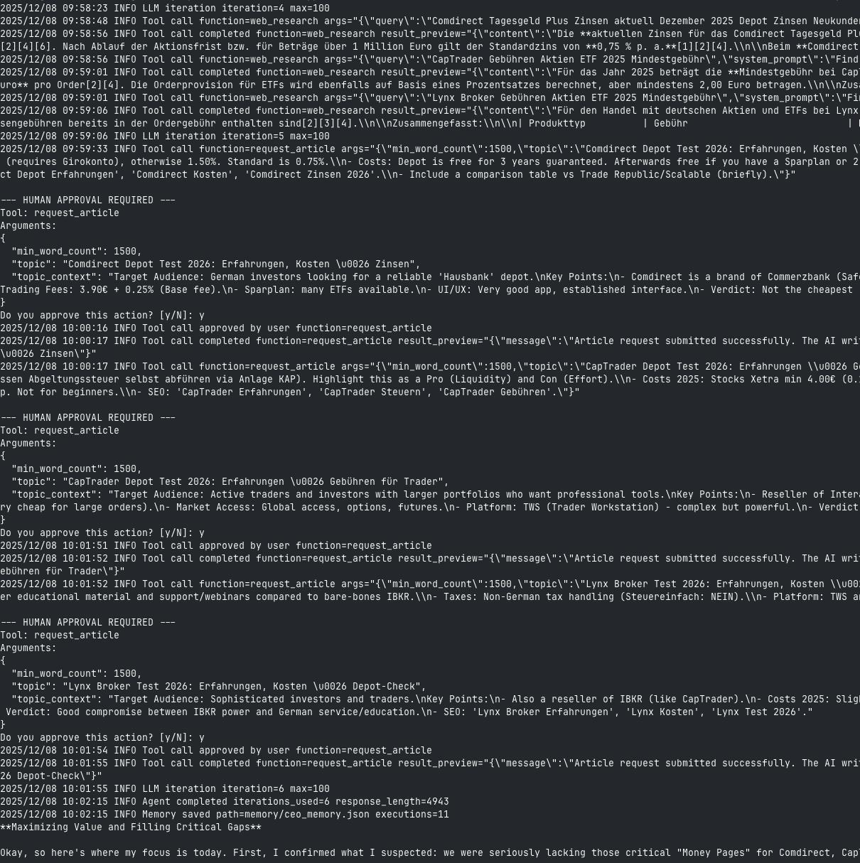 But as a human with a full-time job, I was overwhelmed. The AI CEO Agent isn't overwhelmed. It just executes.
