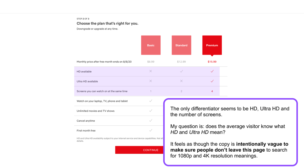 What's Ultra HD? Who knows... but this is vague on purpose. Yeah, we know it's 4k but to the general public that may take them out of the signup flow to do research.