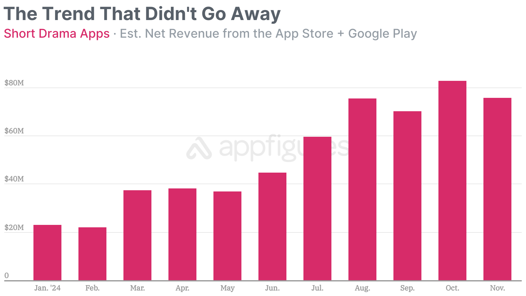 Short drama apps are a new, trending niche. Short drama apps rallied in 2024, according to a report from AppFigures, an app analytics company.