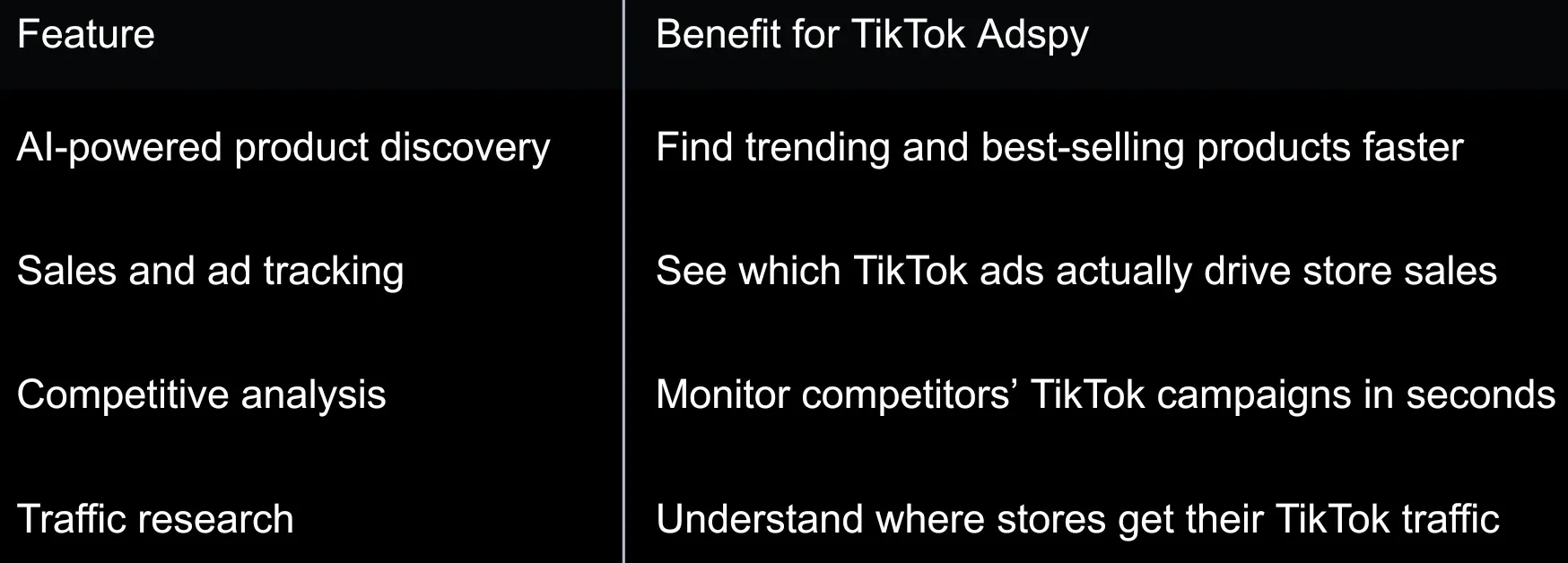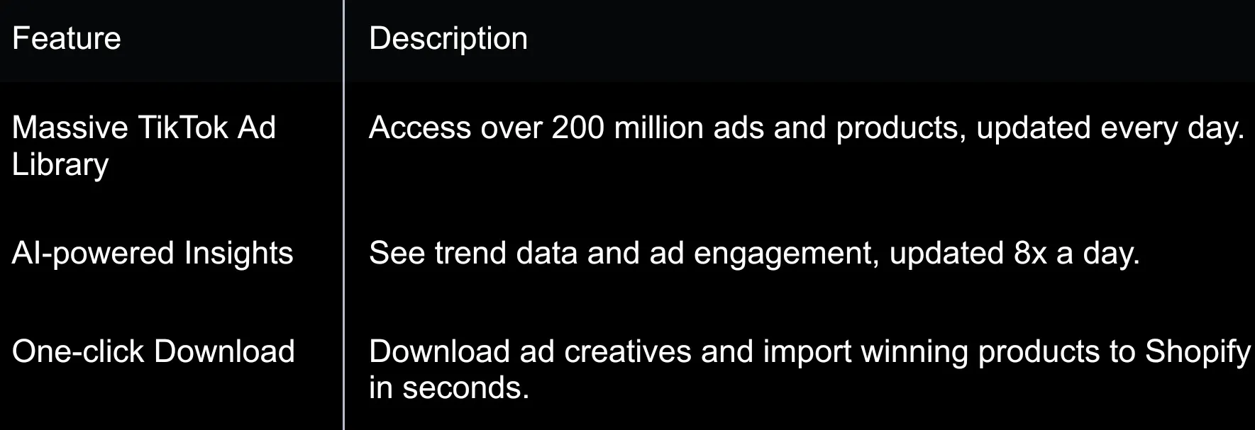 Best for discovering winning TikTok ads and products; user-friendly and focused on TikTok