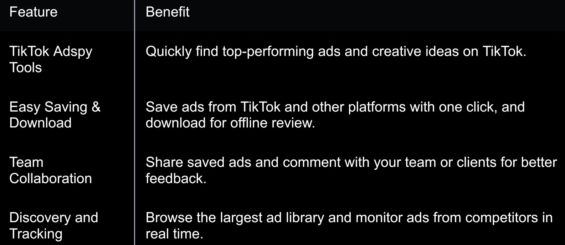 The Largest TikTok Ads Library: Browse through over 50 million TikTok ads, giving you almost endless examples and ideas.