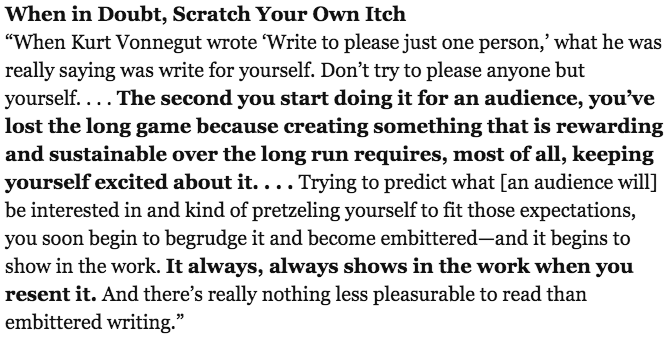I don't know. I've been writing for almost two years and I'm about to launch a newsletter. It was tough sometimes, but this perspective from Kurt Vonnegut helped me a lot.