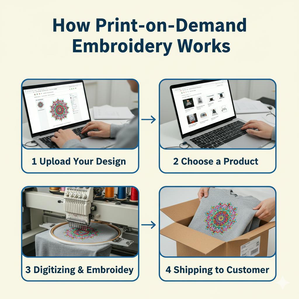 Here’s a step-by-step look at how embroidery on demand works: