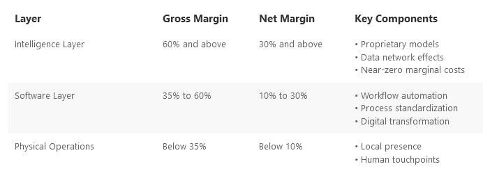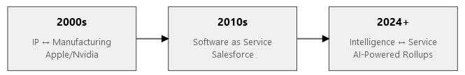 Now, in 2024, we're watching perhaps the biggest transformation yet: the separation of intelligence from service delivery in the $25 trillion services sector. But this time, the playbook isn't coming from Silicon Valley - it's being written by a new breed of investors who understand that AI isn't just about automation, it's about operating leverage.