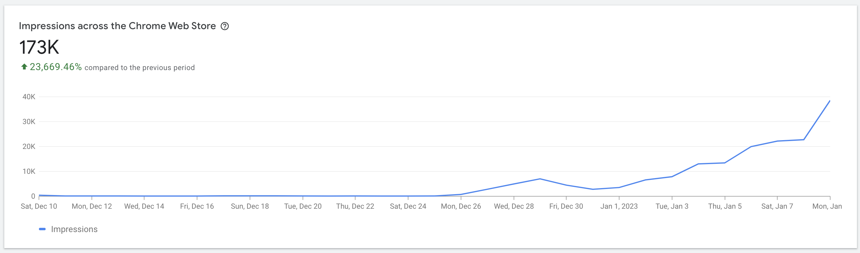 TBH, when I first wrote this tweet, I wasn't thinking about using it to grow the extension user base. But after I saw the interest in it, I started sharing the tweet in different channels along with the link to my extension for anyone who wants to access some new features of ChatGPT now. I can't really measure how much that helped grow the user base, but considering that this tweet was viewed almost 70K times, I doubt that its effect was insignificant.