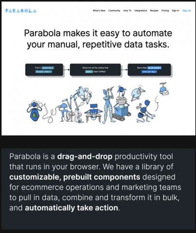 For instance, Parabola.io is an automation tool that has steered towards Ecommerce and even focuses on Shopify to drive sales. Brilliant!