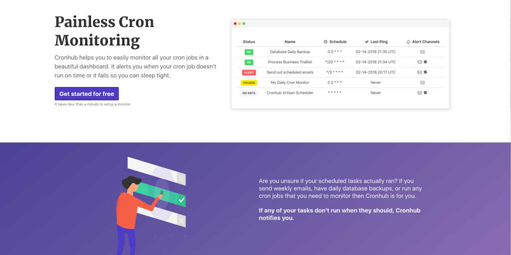 I built Cronhub to scratch my own itch. While working at Buffer I've noticed that most cron jobs are like black holes. We don't know anything about them. Cronhub makes it easy to stay on top of your cron jobs.