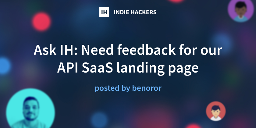 https://www.indiehackers.com/forum/ask-ih-need-feedback-for-our-api-saas-landing-page-ef5e331280
